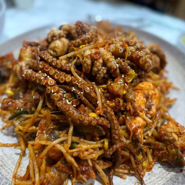 韩网讯/茂朱郡章鱼爱情,有名的美食店,新鲜的章鱼和豆芽。