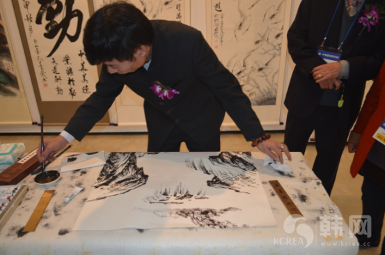 【韩网报道】2016年11月23号全罗北道是韩国书画之都,由韩国全罗北道省政府、全州市政府、世界华人华侨精英联合会、韩国书法家协会、韩国传统美术家协会、韩中地域经济协会(韩网Kcrea.cc.中国网cmnews.kr)作为后援单位的中韩书画名家展在位于韩国全罗北道全州市的全北艺术会馆举行,著名国画家张国民先生受邀莅临出席本届书画展。