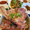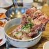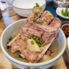 这碗汤的汤底,是用挂有厚厚猪肉的猪骨架,再放入白萝卜及大葱,经过长时间的熬制而制成的。汤底充斥着满满的猪肉香,也因白萝卜及大葱的加入汤底不油腻,很是舒畅清爽的感觉,却又不失浓郁!热热的汤再搭配上一瓶凉凉的韩国烧酒,大概这就是韩国人最爱的搭配了!猪骨架上的肉也已经熟到脱骨的程度,只需要轻轻一咬,大块的猪肉就就这样跟着被咬下来别提多美味了! 补身又有营养的猪骨架汤,与今年份的寒冬有没有很搭配呀,如此美味你也来一份吧!