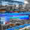 韩网讯/鹭梁津水产市场,各种水产品集货场,直接在餐厅购买后可以做料理。