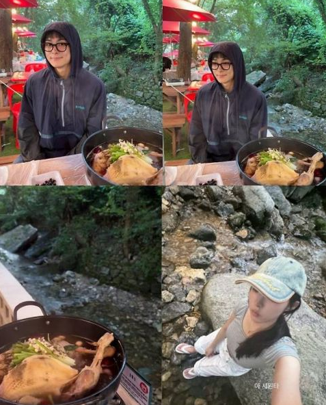 前几日郑干柱公开了几张私照,身处森林中的溪水边,背后是郁郁葱葱的树木,身边还有红色的桌椅、棚子等,郑干柱坐在桌边,桌子上摆放了一锅鸡汤。有人拿著镜头在桌子的另一边拍他。而同一天南瑞妍也公开了在溪水边拍摄的照片,其中一锅鸡汤尤为吸睛,和郑干柱照片里的鸡汤位置、摆放的角度几乎一模一样。