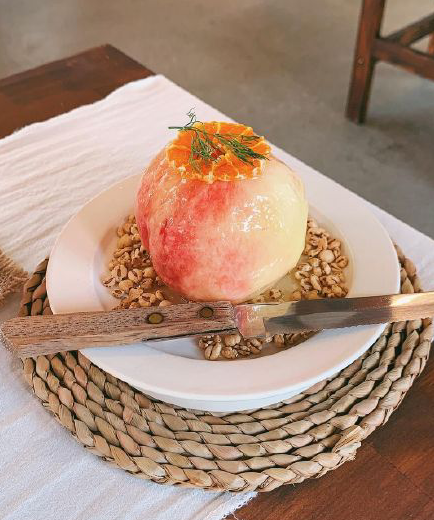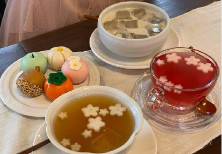来到庆州的话一定要打卡一次的咖啡厅—— “가봉반과”。가봉반과是一家韩屋咖啡厅,在这里可以品尝到韩式传统果子与饮品,不过它们也都是经过创新与改良的。具有创意性的小苹果、南瓜、栗子样式的果子十分逼真又可爱,切开后里面是甜蜜的羊羹陷儿,非常适合搭配热茶共同食用。