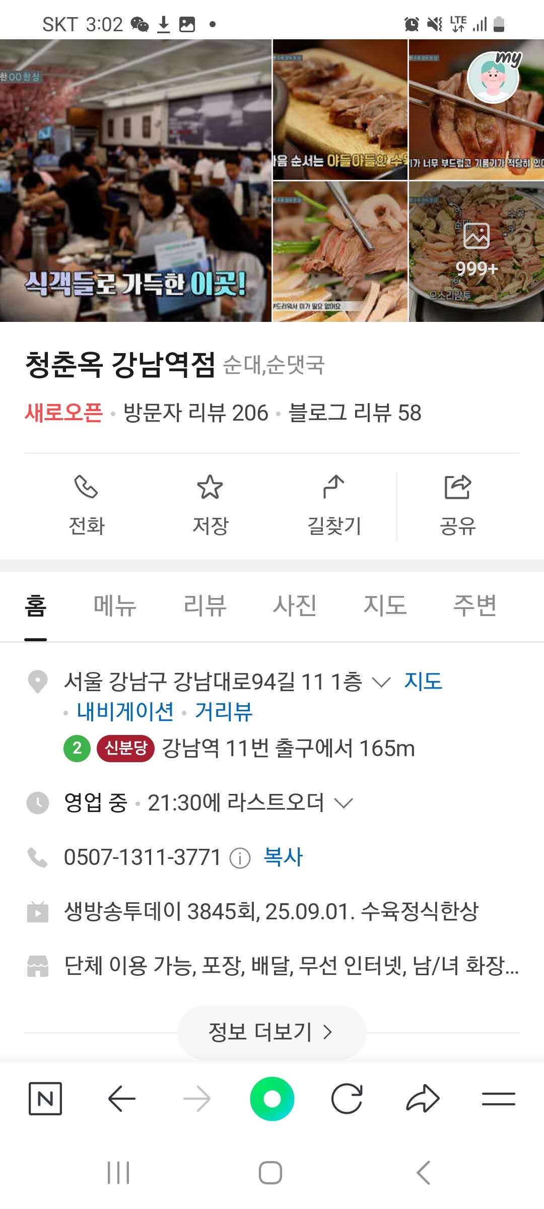 青春屋江南站店是卤肉和米肠汤特别受欢迎的韩餐专卖店