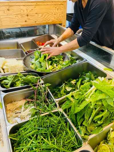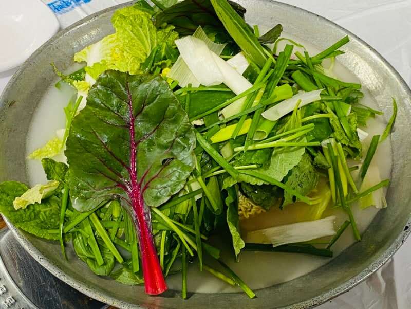 蔬菜真的堆积如山,韭菜、蘑菇、白菜、油菜、苏子叶等,装满了各种新鲜蔬菜。