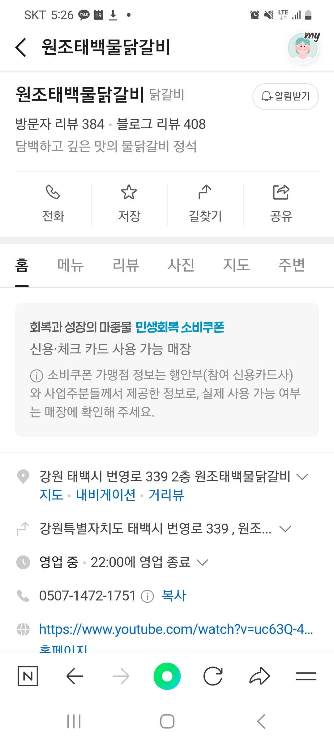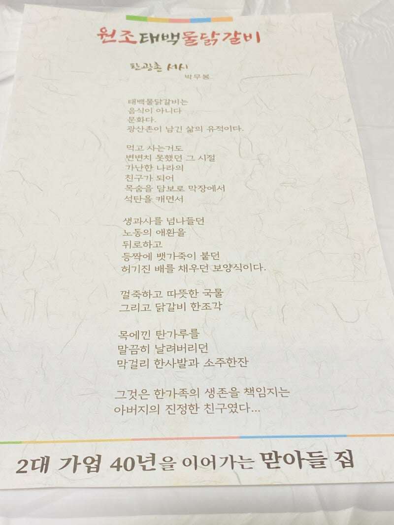 江原特別自治道太白市繁荣路339 2层 元祖太白水 鸡排。
