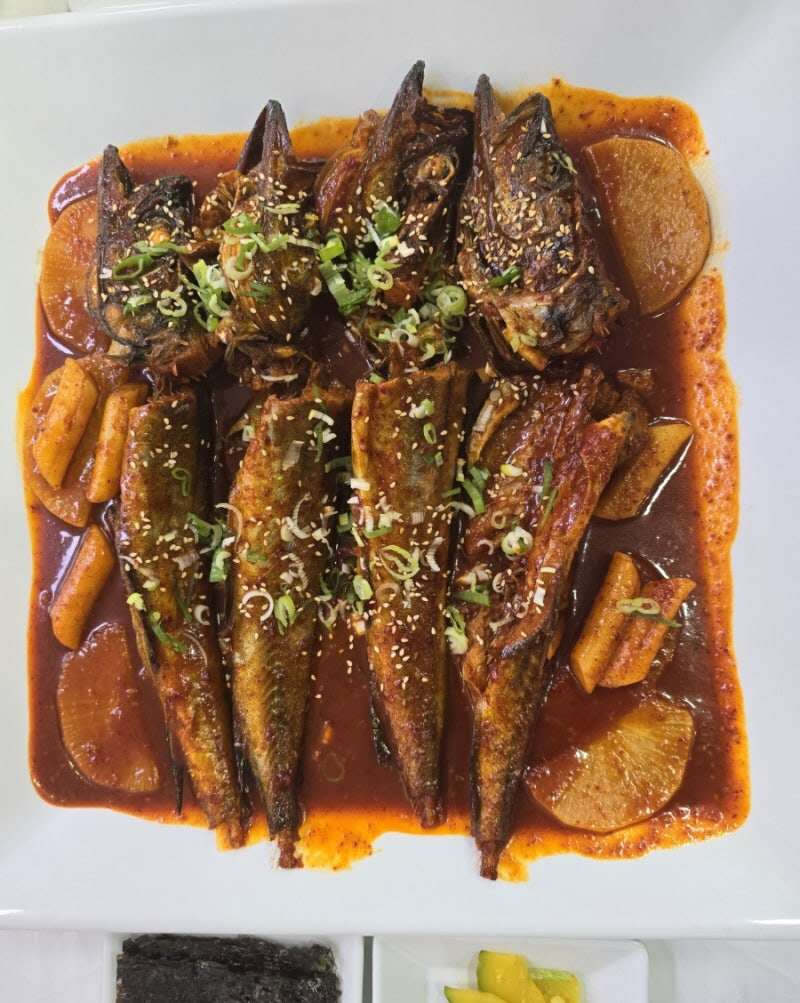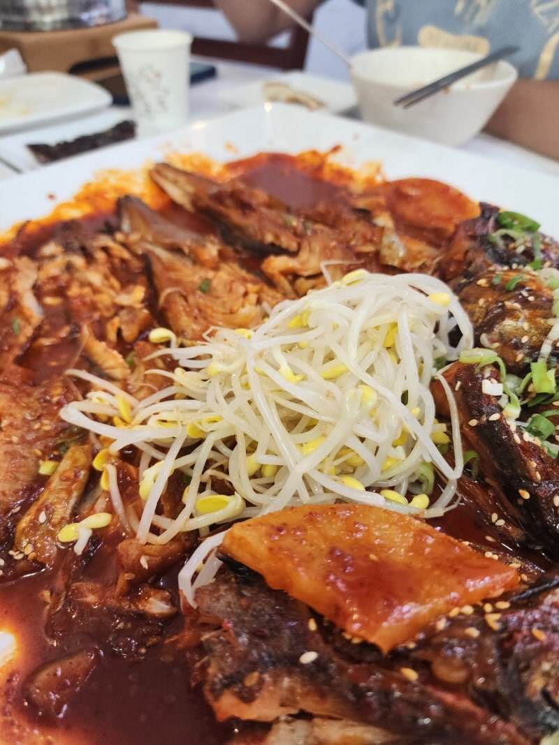韩网讯/ 江原道太白山附近的美食店,松风水声明太鱼套餐,可以强烈推荐的饭店老板做辣炖半干明太鱼。