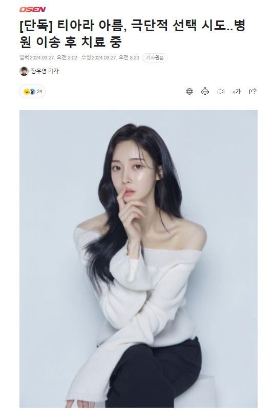 女团T-ara出身雅凛半夜试图轻生,被送往医院治疗仍在昏迷中
