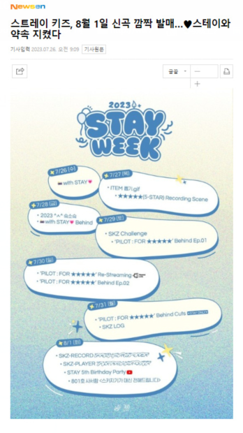 人气男团 Stray Kids将于8月1日惊喜发行新曲,遵守与STAY的约定