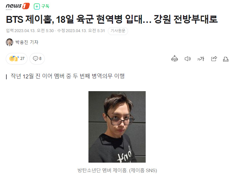 韩媒曝防弹少年团郑号锡4月18日陆军现役入伍