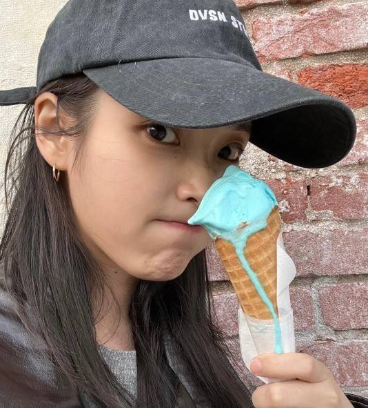 韩国女艺人IU近照公开手拿融化冰激凌表情搞怪超可爱!
