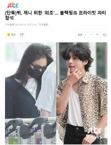 韩媒曝金泰亨为了JENNIE进行外助 参加BLACKPINK私人派对