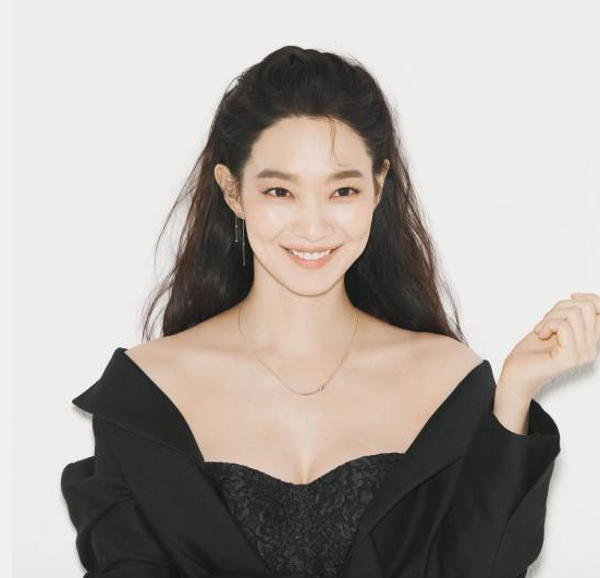 韩国女艺人申敏儿最新时装写真穿超低领黑裙秀迷人锁骨