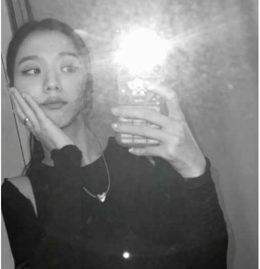BLACKPINK成员JISOO金智秀自拍照公开穿黑色短款上衣小露腹肌