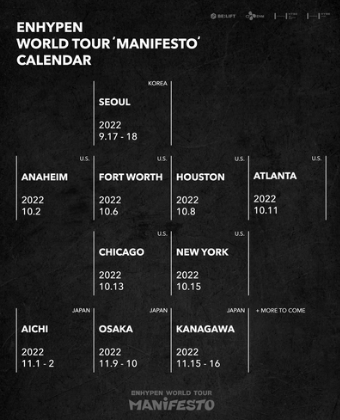 男团ENHYPEN将举办出道后的首次世界巡回演唱会