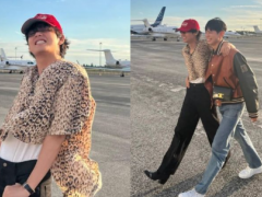 BTS防弹少年团V公开与朴宝剑合照,两人就像出国感到开心的小学生啊