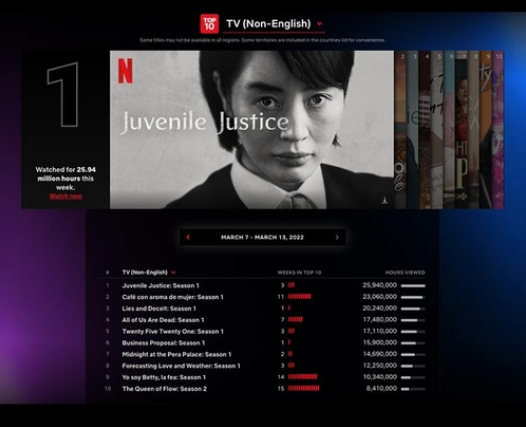 原创韩剧《少年法庭》连续两周登顶奈飞非英语电视剧榜