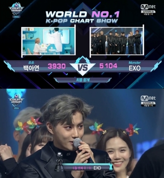 6月16日,Mnet音乐节目《Mcountdown》如期播出,男团EXO凭借歌曲《Monster》回归仅一周便夺得冠军。