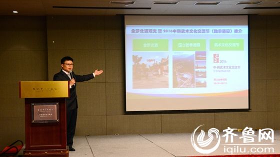 全罗北道观光总括课课长在致辞中提到,山东与韩国全罗北道隔海相望,近几年在中韩政治经济交流飞速发展的大背景下,不管是韩国游客来华旅游,还是中国游客赴韩旅游都实现了飞跃式的发展,这次来济南参加2016中国山东(济南)国际旅游交易博览会,也是想借这个机会向济南人民介绍最能代表正统韩国文化的全罗北道丰富的旅游资源,同时也向大家介绍坐落于全罗北道的世界跆拳道人的圣地——国立跆拳道园的交流产品。说明会上,韩国旅游发展局山东代表处首席代表金亨俊先生也发表了讲话。