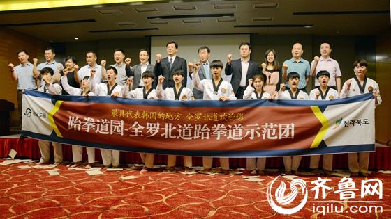 10日晚,韩国全罗北道(省)观光暨2016中韩武术文化交流节(跆拳道园)在济南索菲特银座酒店举行。