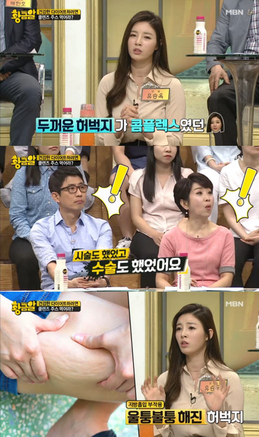 柳胜玉在参加某综艺节目时自曝,自己原来的身材也并不完美,但自己小时候梦想成为模特,为了瘦大腿接受了抽脂手术。但在手术后腿部出现了高低不平的副作用。经受了副作用的折磨,反而开始怀念自己以前的身材,于是她开始运动。最终意识到对于减肥最重要的是运动和饮食。