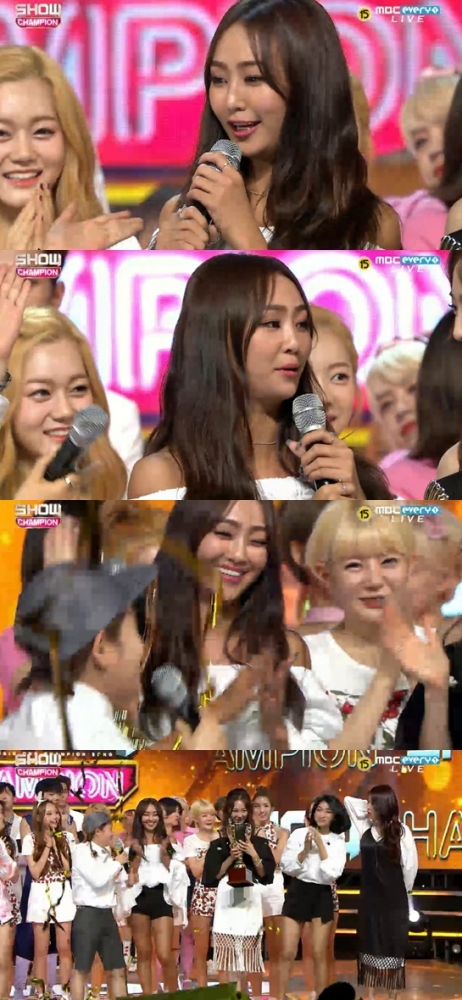 [韩网报道]6月29日,女团Sistar凭借第4张迷你专辑《没我爱》的主打歌《I Like That》获得了MBC MUSIC音乐节目《SHOW CHAMPION》(《冠军秀》)的冠军。