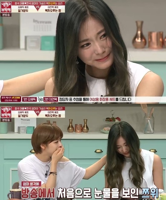 【韩网报道】TWICE成员子瑜与定延参与昨(27日)播出的JTBC《拜託了冰箱》,子瑜吃了吴世得做的中国料理后,说:“这道料理让我想到家,这是妈妈的味道。”吃到李连福的料裡后,主持群问她:“有想到妈妈吗?”没想到这句话把她逼哭。