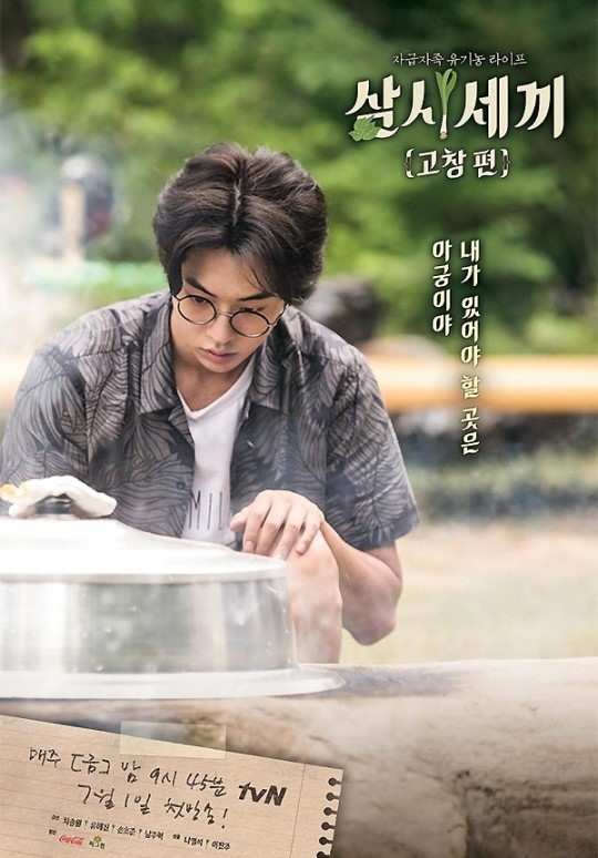 【韩网报道】7月6日,tvN综艺节目《三时三餐》剧组在官方SNS发布了“高敞篇”节目成员柳海真、车胜元、孙浩俊和南柱赫四人的单人海报。
