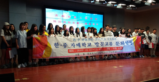 “有朋自远方来,不亦乐乎”,继今年5月17日济南信息工程学校与韩国京畿道高阳市新一商务高中达成友好合作交流意向之后,7月5日——6日,韩国高阳市新一商务高中第一批访问团到达济南信息工程学校,济南信息工程学校19名学生与韩方学生结成对子,陪同客人参观校园,交流中韩文化。