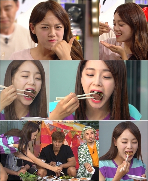 在节目组公开的照片中,金世正暴风般的吃货现场吸引人眼球。金世正在节目中展现了长大嘴一边吃肉一边站起来拿食物的样子,可爱的金世正让观众无法转移视线。