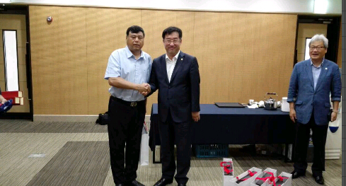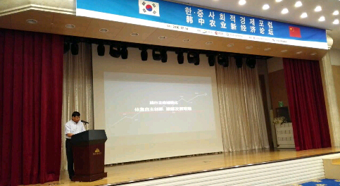 北京宏福集团董事局主席黄福水受邀参加新农论坛,与各位学术界人士,环球网,中国村长,江原道社会性企业代表等一同关注产业融合与农业发展竞争力 、中韩交流产品销售以及宣传。并与并与江原道经济副知事孟圣奎亲切交谈,互赠礼物。