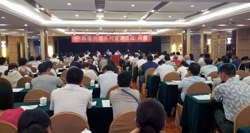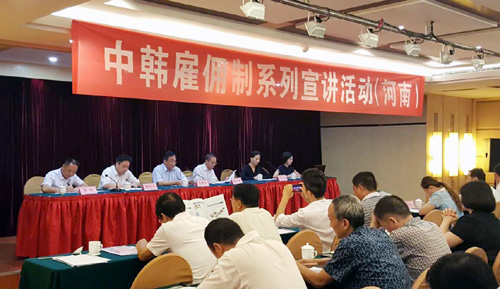 2016年8月9日,由商务部投资促进事务局主办,河南省商务厅与新县对外劳务合作管理局组织和承办的“2016年中韩雇佣制系列宣讲活动(河南)”在郑州大河国际饭店正式启动。来自全省27个劳务服务平台、20多所大中专院校和赴韩劳务人员代表等约150人参加了宣讲活动。
