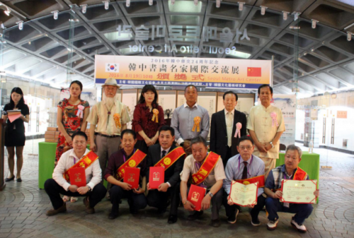 (中国获奖书画家代表与日韩嘉宾在韩国首尔合影)