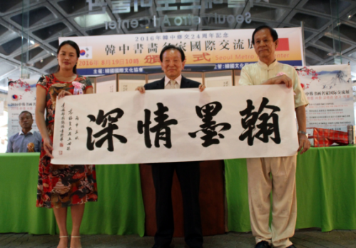 韓中日書藝文化交流協會 會長金蓮、韓國書畵作品大展 大會長 李吉春 、