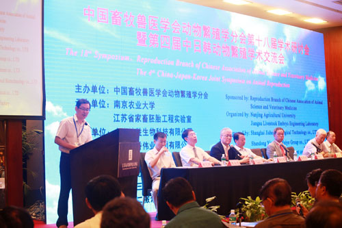 南京农业 大学副校长戴建君教授出席会议并致欢迎词。他向与会代表介绍了南京农业大学的办学理念、历史沿革与学科发展,重点介绍了我校动物科技学院及繁殖学科的研究进展,感谢各位参会专家及企业界的朋友对学校的长期支持。此外,日本动物繁殖学会理事长前多敬一郎教授、韩国动物繁殖学会理事长梁莆锡教授也先后致辞。我校动科学院院长刘红林教授、党委书记高峰教授等应邀出席了本次会议。