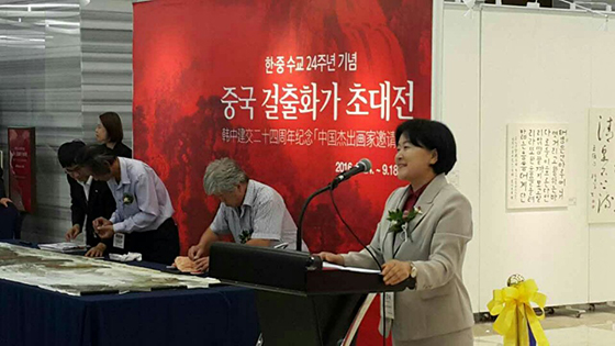 申京淑会长在致辞中表示,中国和韩国历史渊源,很长时间以来在整个艺术领域相互影响,共享着时代精神和美学世界观。虽然中韩两国关系最近存在一定的危机,但希望本次展会能够缓解稍微冷却的中韩关系,成为扩大沟通与共鸣的幅度的契机。