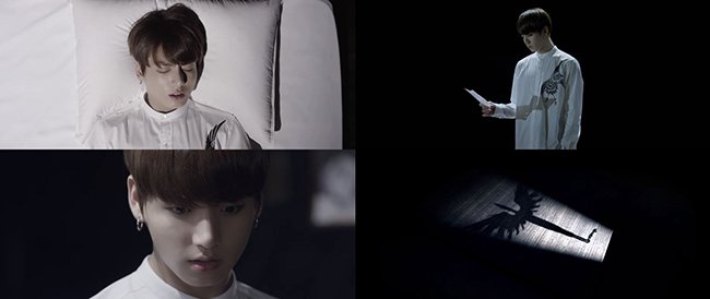 影片以RapMonster的旁白开头,从恶梦中惊醒的柾国在漆黑的房间中捡到一张男子画像,接着类似的画作再次出现,却一下子起火燃烧。神秘感十足的剧情和诡谲气氛令不少粉丝直说:「好像恐怖电影!」也让大家更加好奇接下来的预告影片故事会怎么发展。