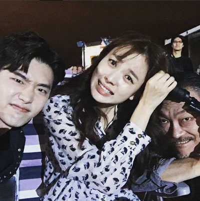 【韩网报道】演员金义圣公开与李钟硕、韩孝周拍摄《W-两个世界》现场的合照。