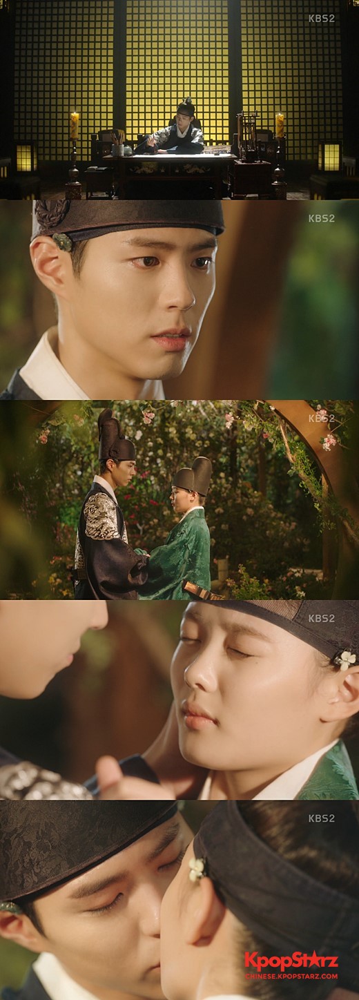 在今日(12日)播出的KBS2TV月火电视剧《云画的月光》中,李韺(朴宝剑饰演)最终向"内官"洪乐瑥(金裕贞饰演)告白,并上演了令人心动的Kiss。