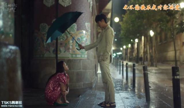 第一集结尾,打着伞的男主冒雨来接孤单无措的女主,伞面一点点上移,男主的脸一点点露出来,然后女主满眼欣喜感,这一幕的拍摄手法又分分钟让人想起《朝九晚五~霸道和尚爱上我》