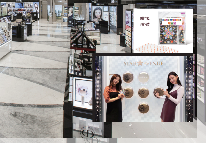 在明洞总店的星光大道店进行各样的赠品赠送活动。首先在星光大道店举行制作许愿卡活动,并赠送乐天酒店住宿券、SPA优惠券。活动于10月14日开始到1月31日结束。2017年1月进行幸运顾客抽签活动。在星光大道又举行黄致列、EXO、李敏镐、金秀贤等乐天代言人的珍藏品的试用活动。并通过抽奖赠送给顾客。