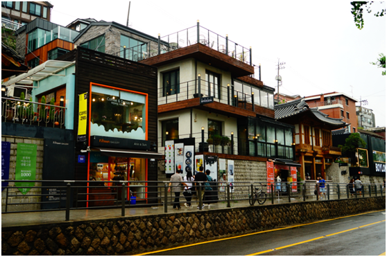 听韩国小哥哥说,这儿原来住的都是一些富人,现如今由于房屋分布较密集,不易再重新改革翻新。所以就保留了原样。难怪经过每一户人家的时候,基本他们都有2个停车位,再就是家家似普通又并非普通,像是小型的别墅,每个装饰都能看到主人的用“心”。实则是低调的奢华,隐形的富豪。