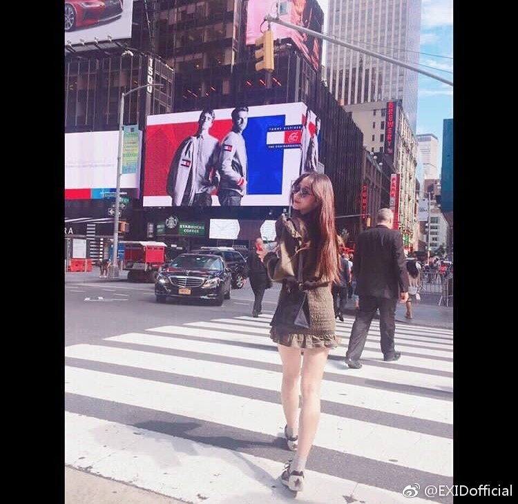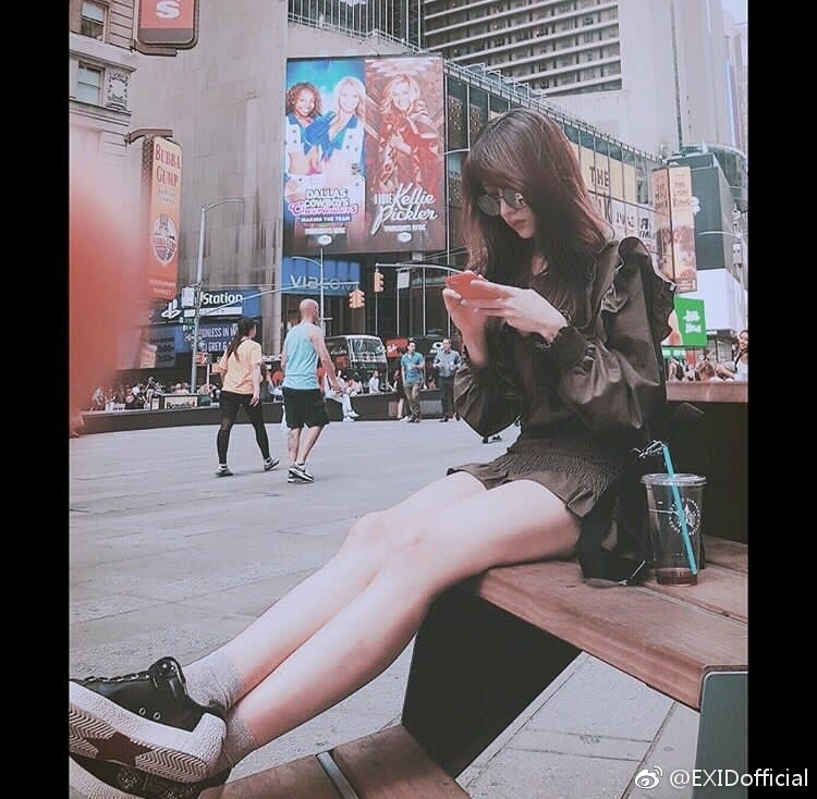 讯北京时间9月15日一早,EXID官方微博晒出成员Hani在纽约街头拍摄写真的花絮照,Hani在路边大方补妆涂口红,率性可爱。