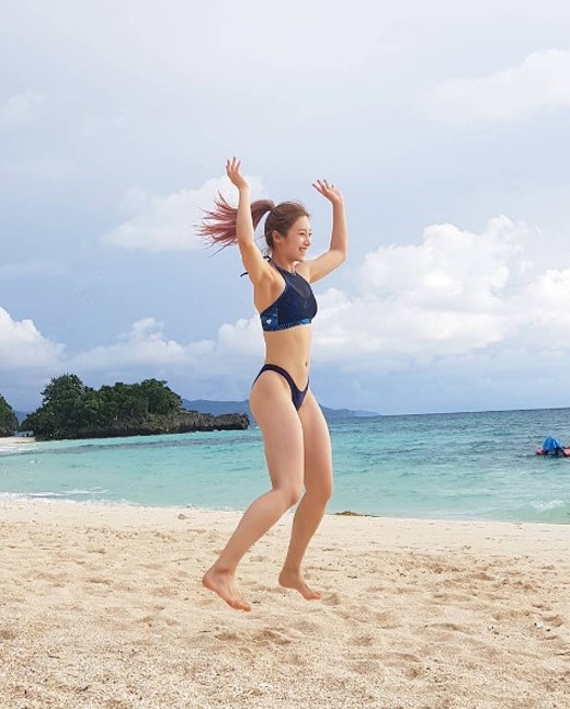 韩国美女健身教练晒泳装照 身材火辣健美