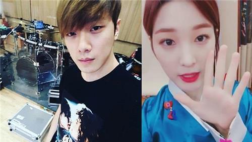 FTISLAND崔珉焕(左)和LABOUM律喜