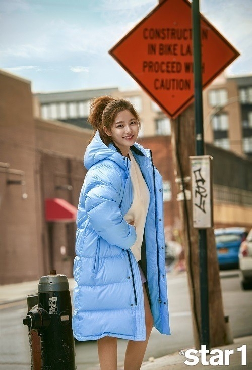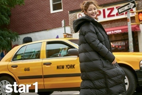 女艺人金裕贞不久前飞往美国,在纽约街头拍摄了一组冬装写真。