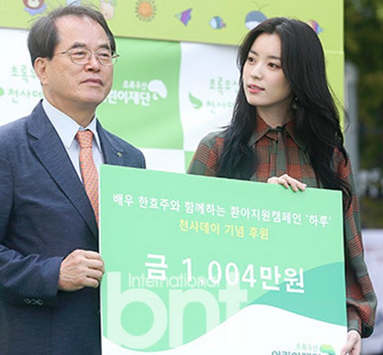 演员韩孝周出席了在首尔钟路区清溪广场举行的“2017绿雨伞天使之日”儿童公益活动。