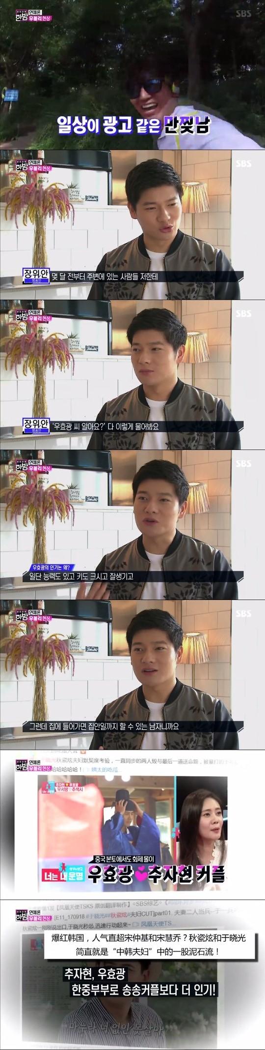 讯昨晚(26日)播出的SBS综艺节目《深夜正式演艺》中,在韩知名中国艺人张玉安出演,称“韩中夫妇”于晓光和秋瓷炫在当地人气极高。