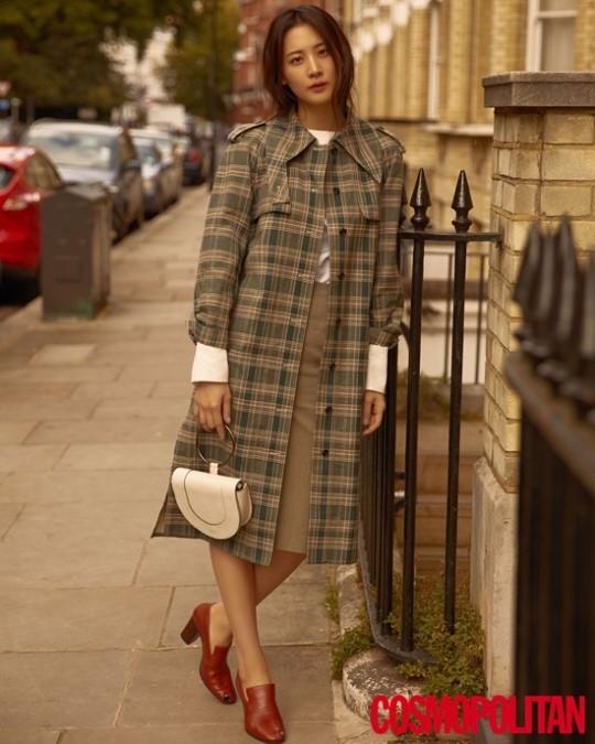 韩女星秀贤伦敦街头拍写真 展秋季时尚穿搭