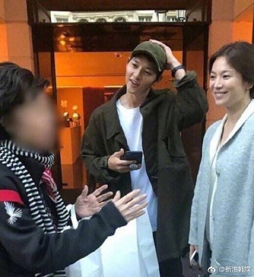 讯28日,韩媒报道了在法国巴黎宋仲基和宋慧乔#与路人的合照,准新人笑容甜蜜.