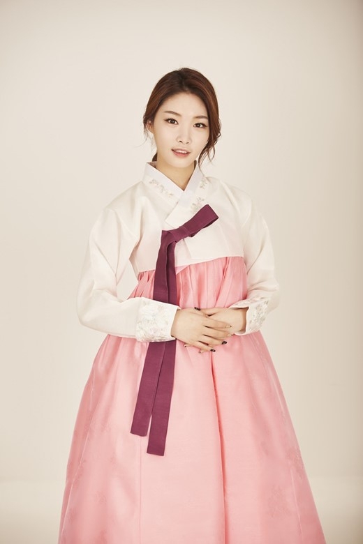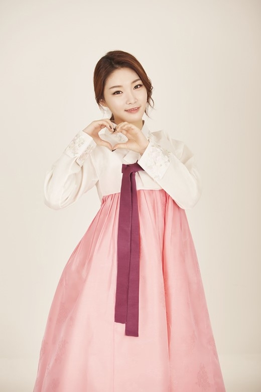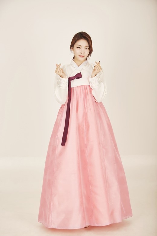 女歌手金请夏近日为迎接中秋节的到来,身穿韩国传统服装拍摄了一组